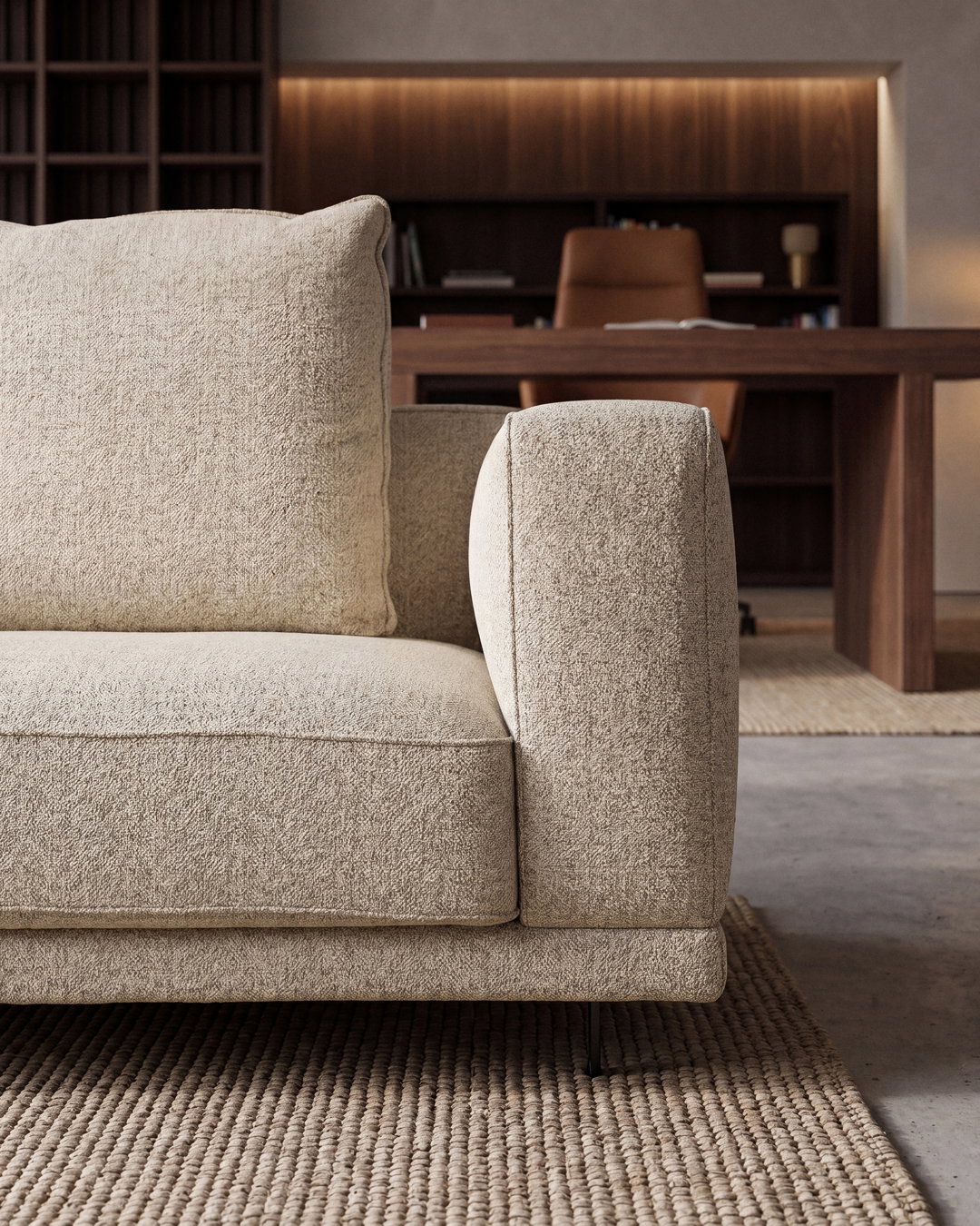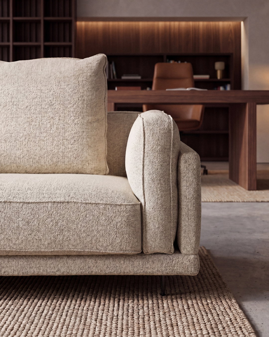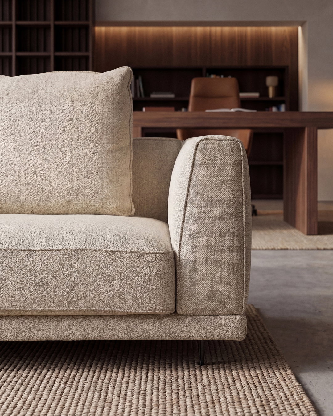 The Catena armrest matches the sofa perfectly, sharing the same dimensions as the backrest and featuring a subtle inward slant on its edge.