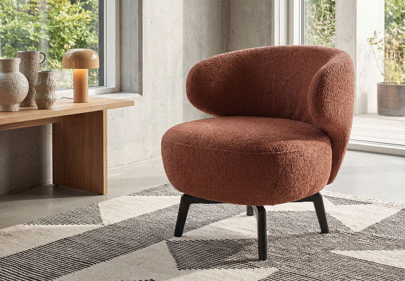 Aila is not just an armchair, it's an invitation to slow down. Its rounded, enveloping form brings a sense of laid-back charm to any space. Choose from our extensive range of upholstery options to make Aila uniquely yours, whether you prefer bold textures or subtle sophistication. The optional swivel base adds a playful twist, making Aila a perfect companion for both relaxing and entertaining.