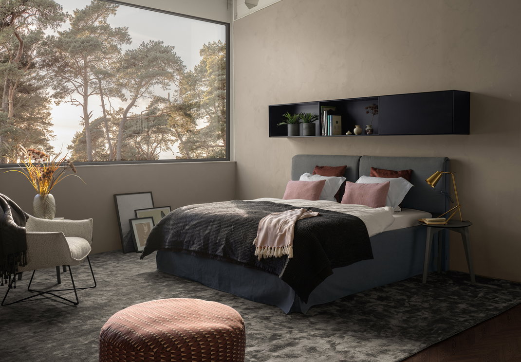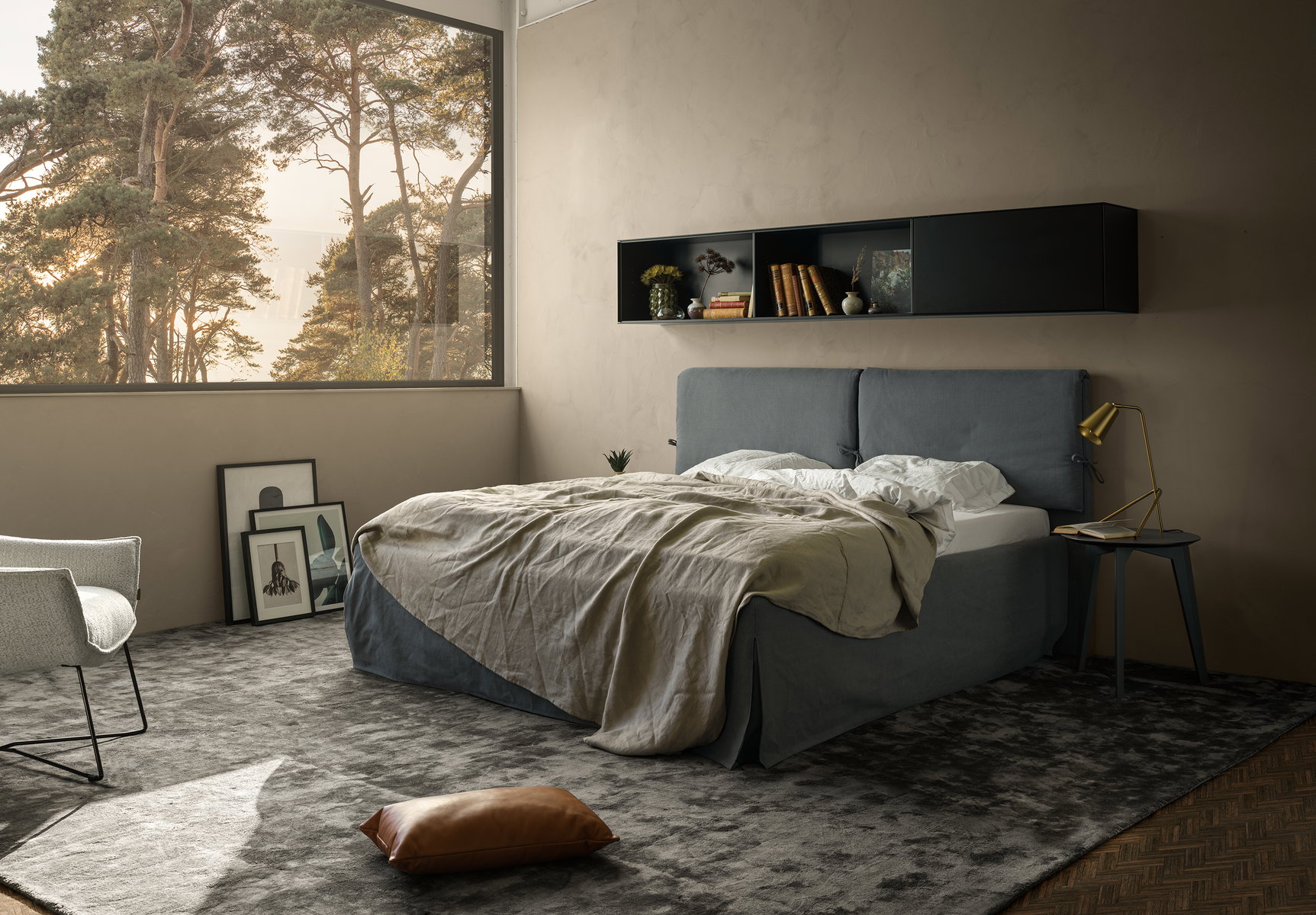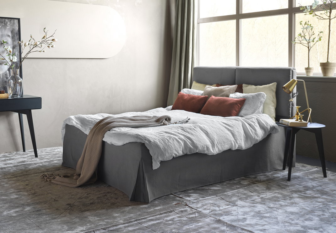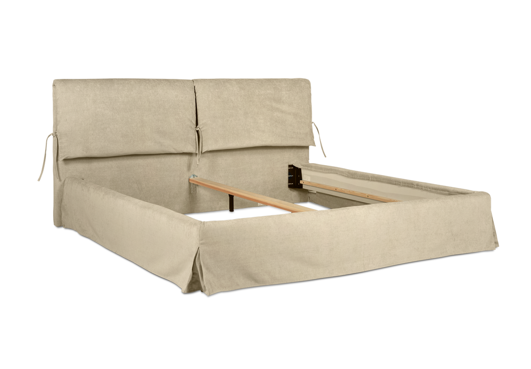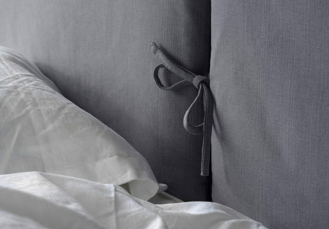 Pamper yourself in our dreamy, relaxed Noche bed frame. Enjoy the bows on the headboard and bed frame skirt that extends to the floor - all lovely details that add to its charming romantic character. The cover on the bed frame and headboard cushions are removable and available in fabric and can be washed according to the recommendations.