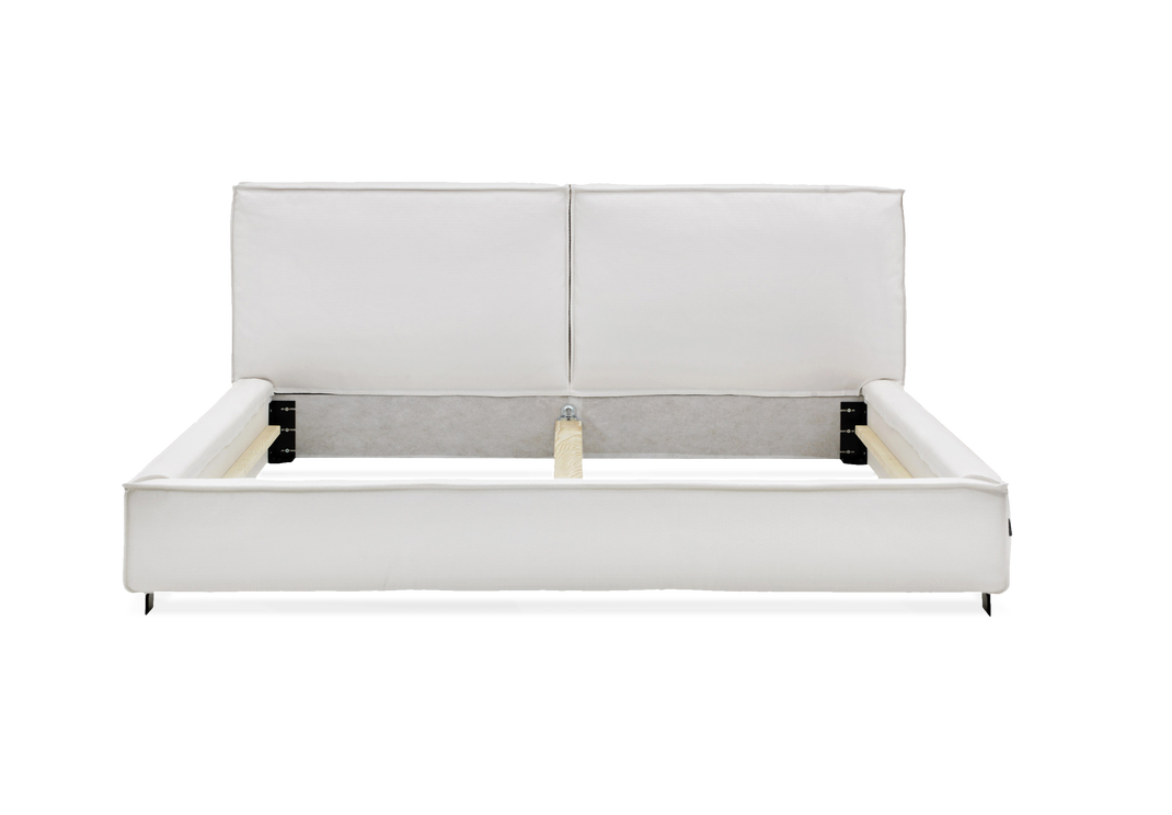 This inviting reassuringly supple bed frame is fully upholstered and makes a significant visual impact wherever you place it. The beautiful special seam accentuates the outline of the bed and adds plenty of character and elegance and the feather-filled headboard adds a whole new level of luxury and refinement to the bed frame. By choosing from our extensive upholstery range, you can dial its presence up or down to suit your requirements and placements. Loose cover the bed frame.