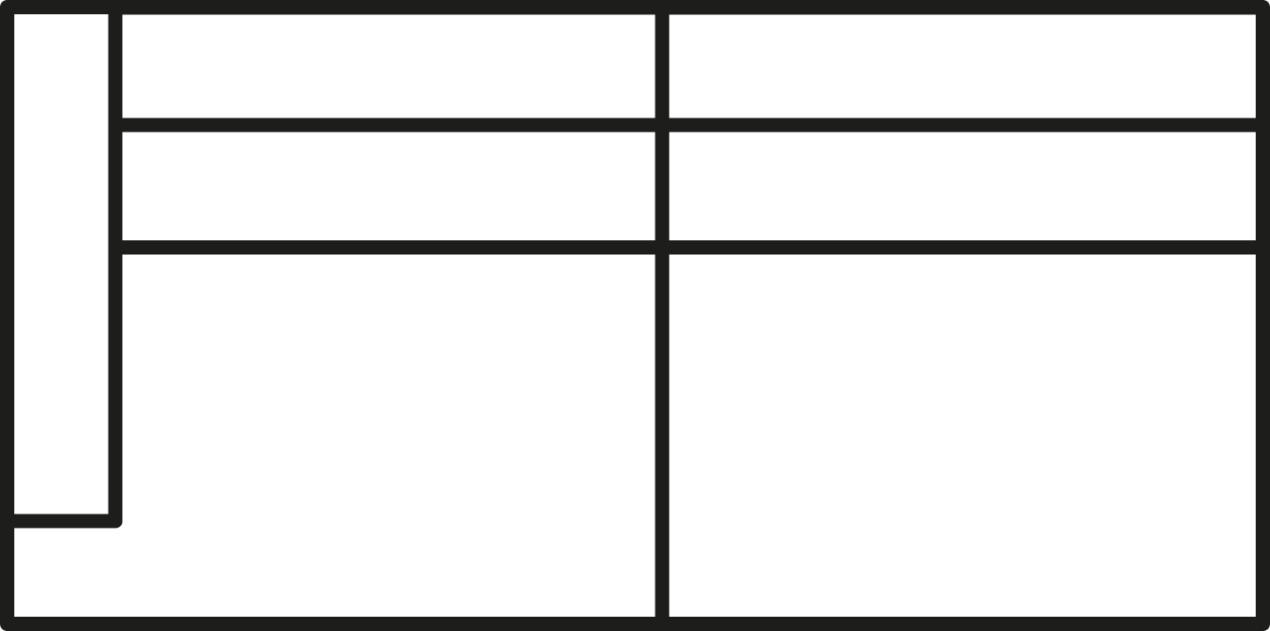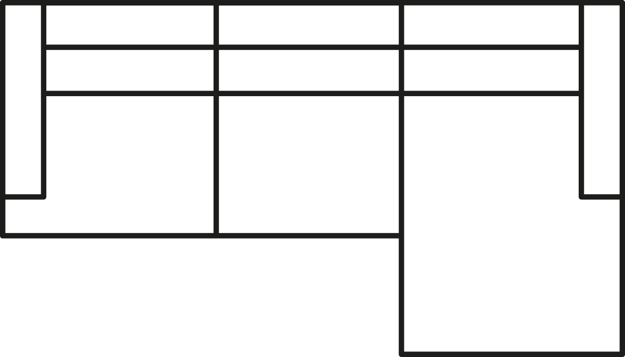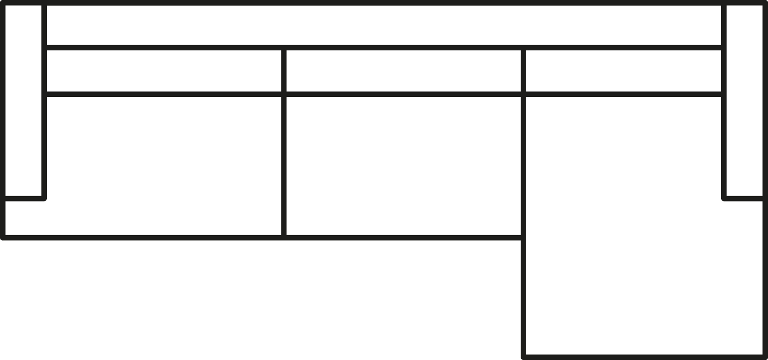 Divan-Module L/R | 108 x 251 x 83 cm | 43 x 62 | 2/3/0 | 5 | 76 kg | 1.73 m³ |