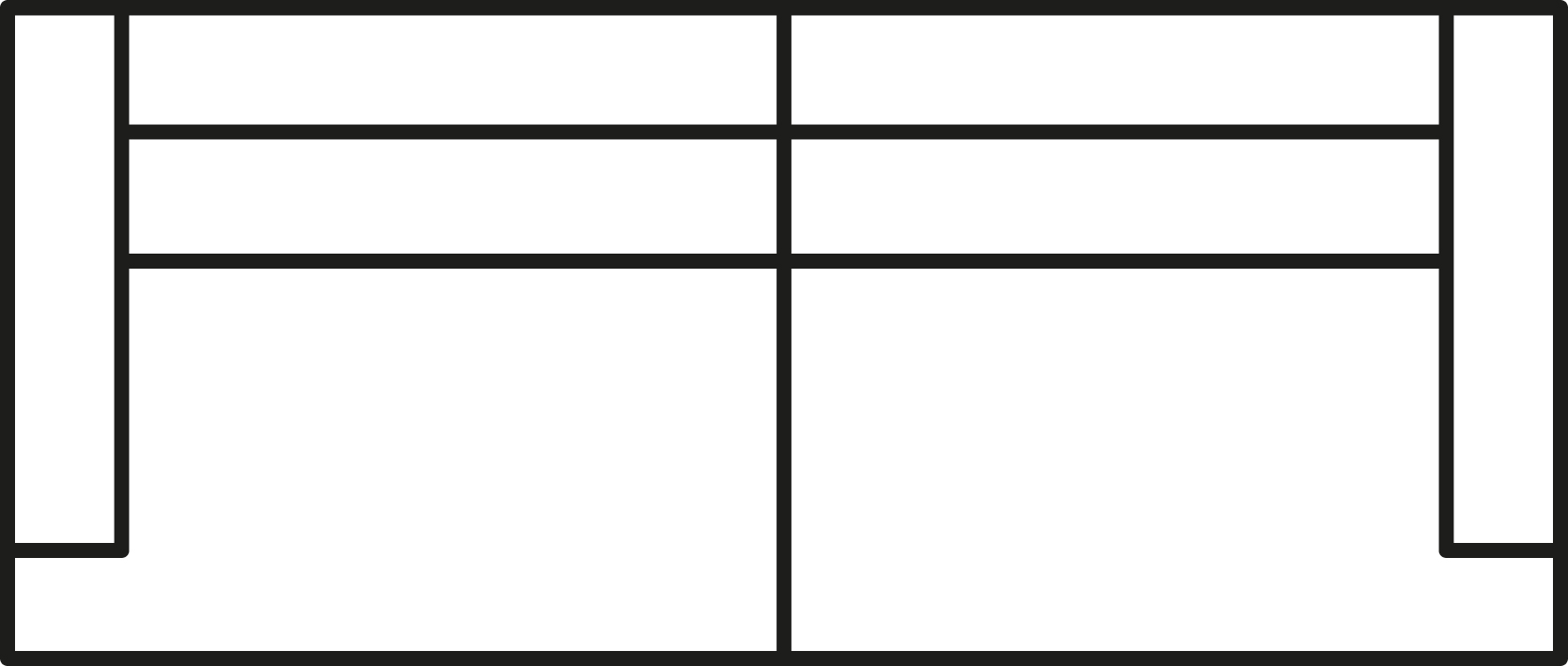 4-Module L/R (2 pkg) | 251 x 108 x 83 cm | 43 x 62 | 2/2/0 | 4 | 83 kg | 1.82 m³ |