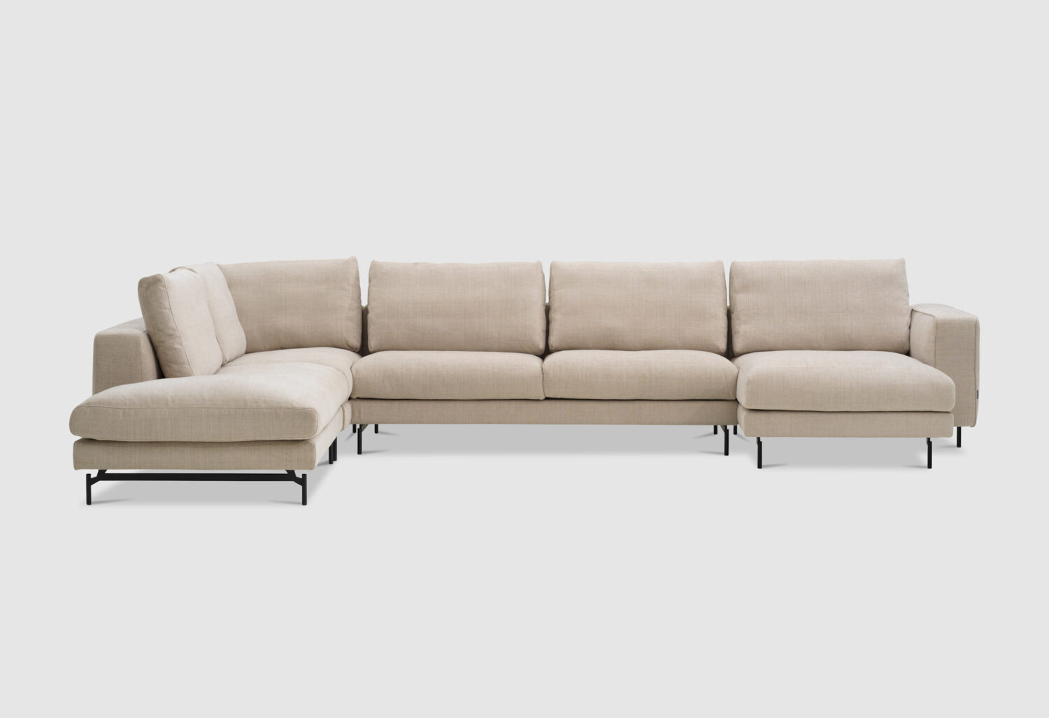 Santo is a modular sofa system that exudes relaxed elegance. Designed for modern living spaces, it combines soft, sculptural forms with refined detailing and generous proportions, inviting you to unwind in a space that feels sophisticated. Each module is fully upholstered and available in both premium fabric and natural leather, giving every configuration a complete and intentional look from any angle. Along the sides, a delicate French seam outlines the silhouette, a subtle nod to European craftsmanship and Furninova’s attention to the smallest details.