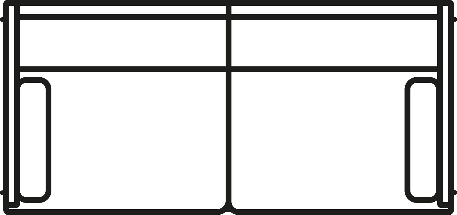 2,5-Sits | 204 x 93 x 87 cm | 51 x 60 | 2/2/2 | 4 | 62 kg | 1.24 m³ |