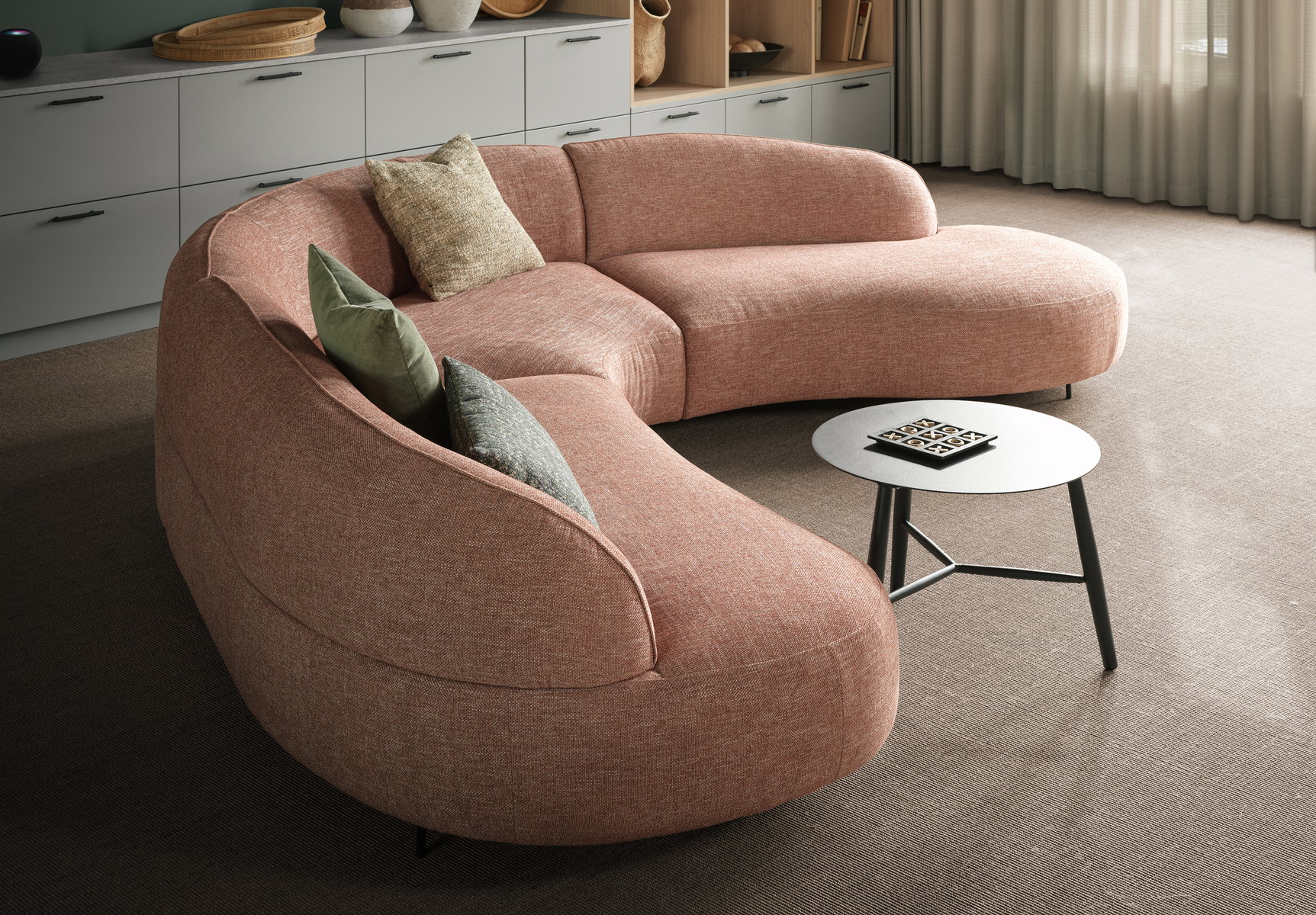 Arias organiskt rundade former ger den ett iögonfallande utseende som tydligt utstrålar både stark personlighet och närvaro. Dess böjda ram övergår smidigt från armstöd till säte och omsluter användaren i en harmonisk kombination av genomtänkt design och hög komfort.