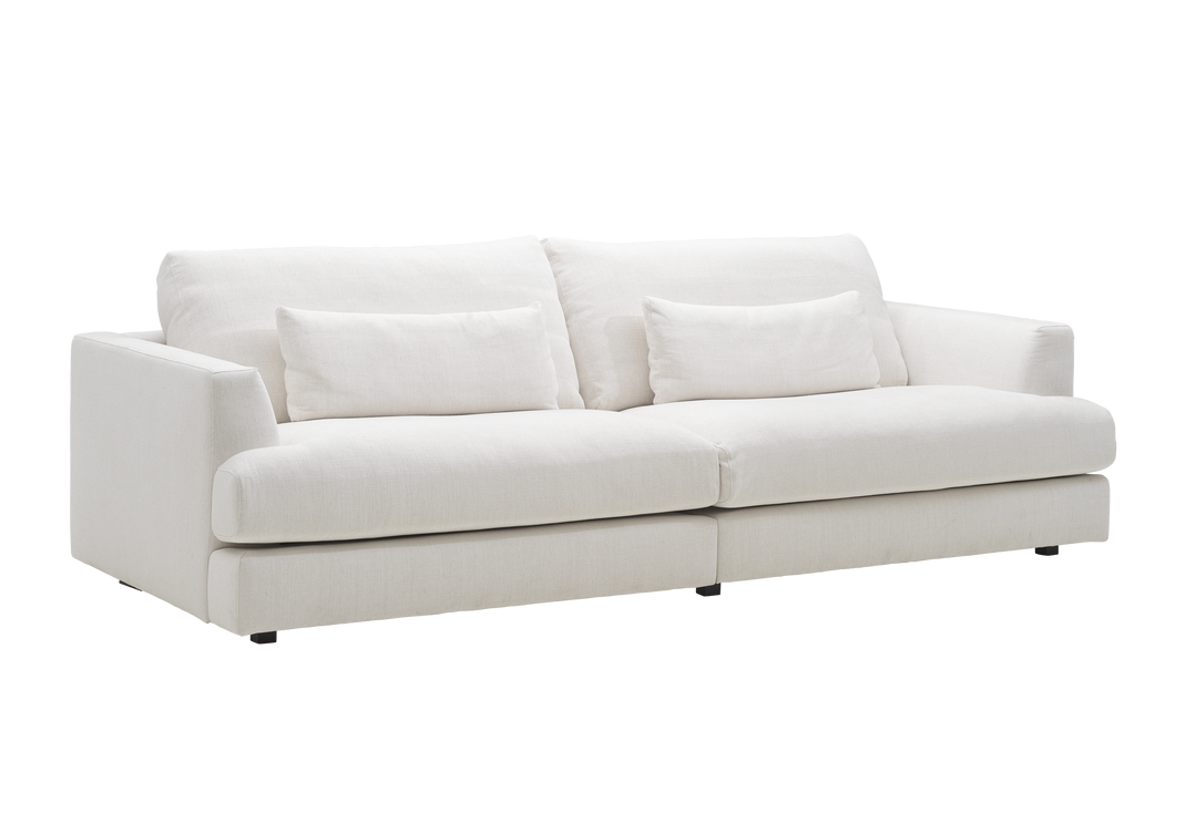 Edna är en djup och generös soffa med en bred och extra tjock sittkudde. Dessutom är soffans omfamnande höga ryggkuddar fyllda med en lyxig fjädermix, vilket gör det enkelt att hitta en perfekt avslappnad position för axlarna när man sjunker ner i dem.