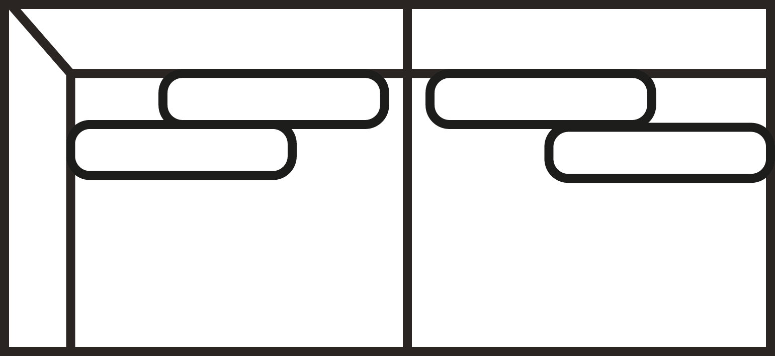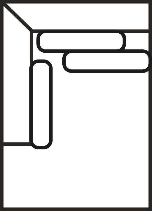Hörn-Modul | 102 x 102 x 80 cm | 44 x 52/60 | 1/3/0 | 4 | 32 kg | 0.74 m³ |